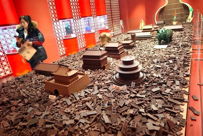 تعرض منطقة عرض فنون الشوكولاتة مجموعة متنوعة من الأعمال الفنية الضخمة المصنوعة من الشوكولاتة، مثل مدينة بكين المصنوعة من الشوكولاتة، والمحور المركزي المصنوع من الشوكولاتة، وسقف الزخرفة على شكل التنين المصنوع من الشوكولاتة. أما في مساحة التصوير التفاعلية في البيت الذهبي، فيتم تكديس ونثر عملات ذهبية مُحاكاة للواقع، ويمكن للزوار لمسها والتقاط الصور وتقديم الأمنيات للعام الجديد. وتحكي منطقة استكشاف المعلومات حول الكاكاو قصة الكاكاو من خلال الصور والمعلومات المعروضة.