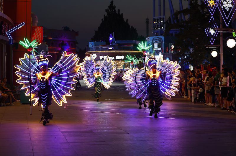 يمكن للسياح أيضا المشاركة في الأنشطة ذات المواضيع الخاصة مثل حفلة كرنفال الموسيقى الكهربائية وحفل شا تشو للموسيقي، ومشاهدة عروض الأضوية، والدراما الحية للمؤثرات الخاصة وما إلى ذلك، خلال الجولة الليلية في المنتجع.