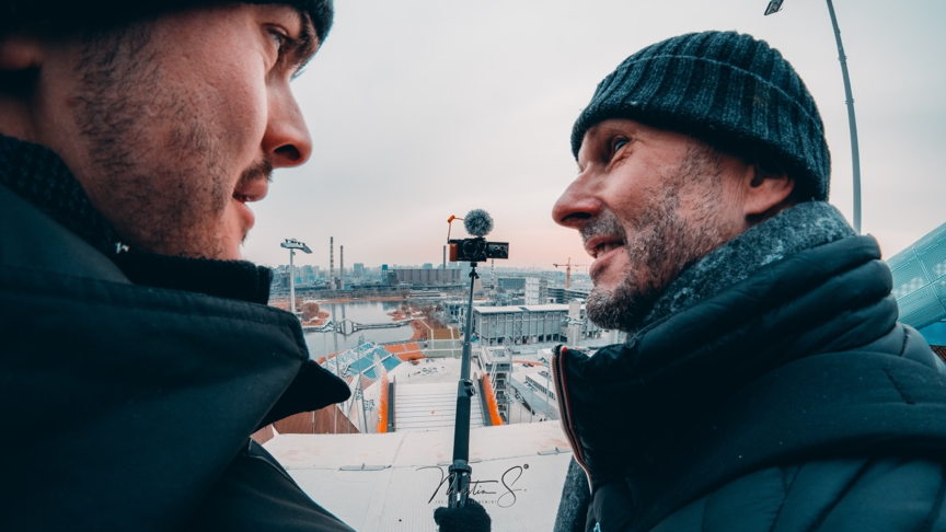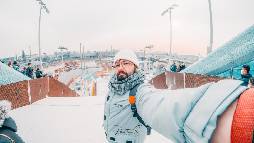 المصور مارتن يأخذ صورة سيلفي على منصة قفز التزلج في شو قانغ