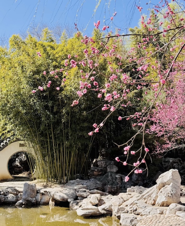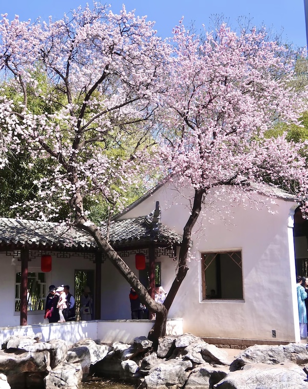 أزهار المشمش في أوج ازدهارها في جناح يو شيان شان