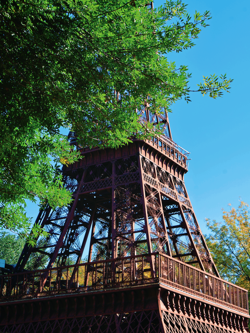 منظر مصغَّر لبرج إيفل تحت ظلال الأشجار