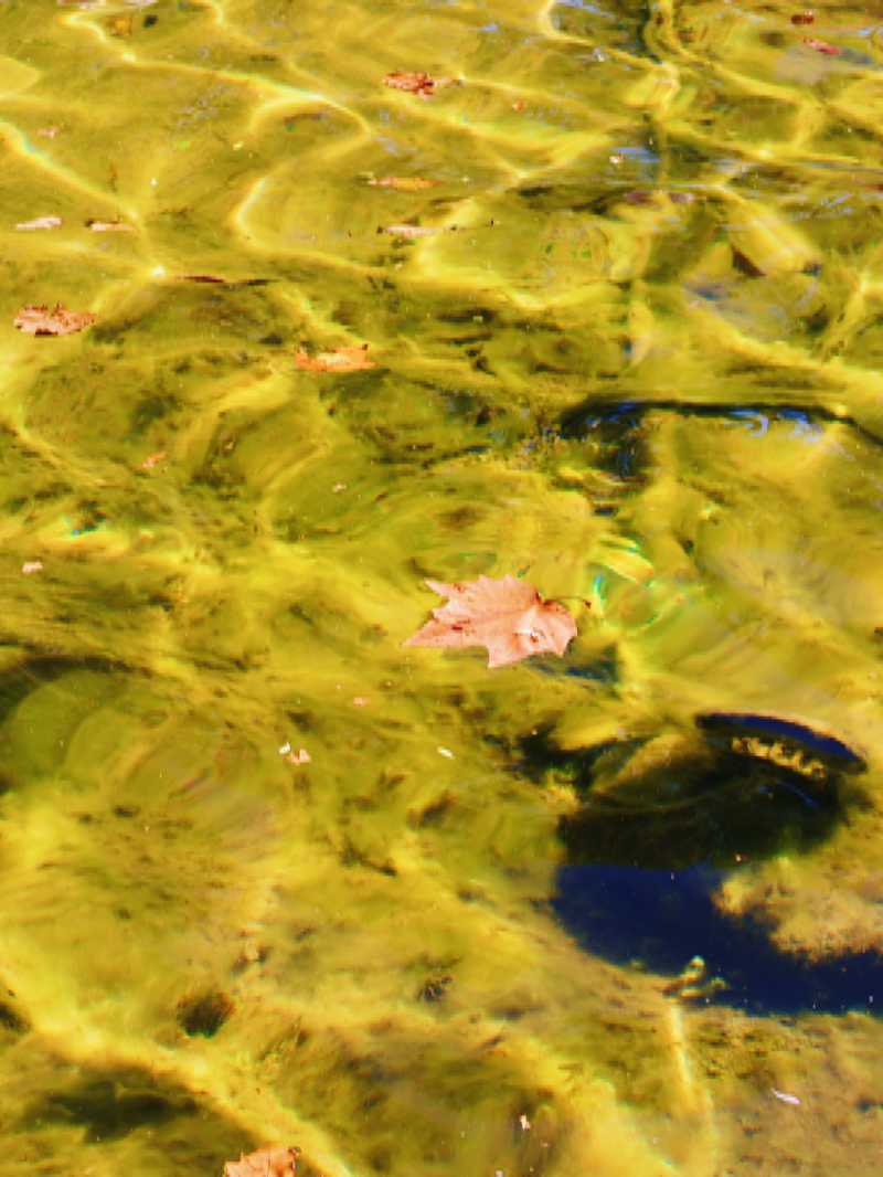 أوراق الأشجار المتساقطة تطفو على سطح الماء