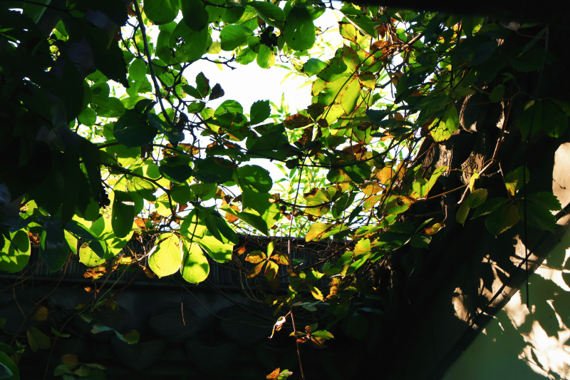 أشعة الشمس تتسلل من بين ثنايا أوراق الأشجار