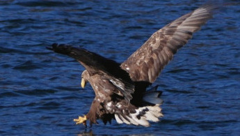 في سماء خزان شي يو المائي في حي بينغ قو ببكين، تحلق طائرتان من النسور ذات الذيل الأبيض بشكل مميز