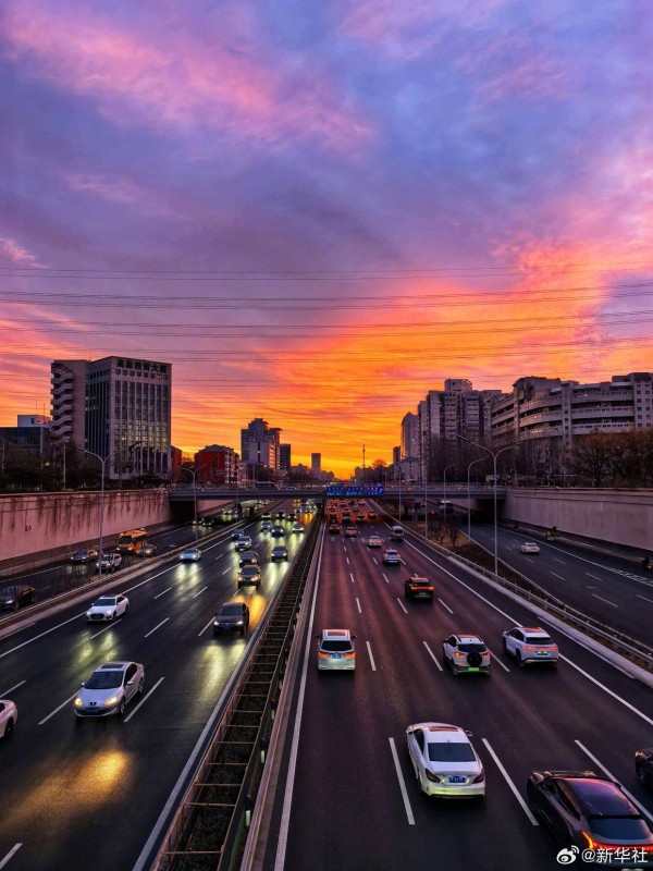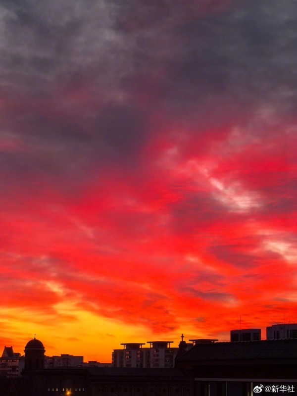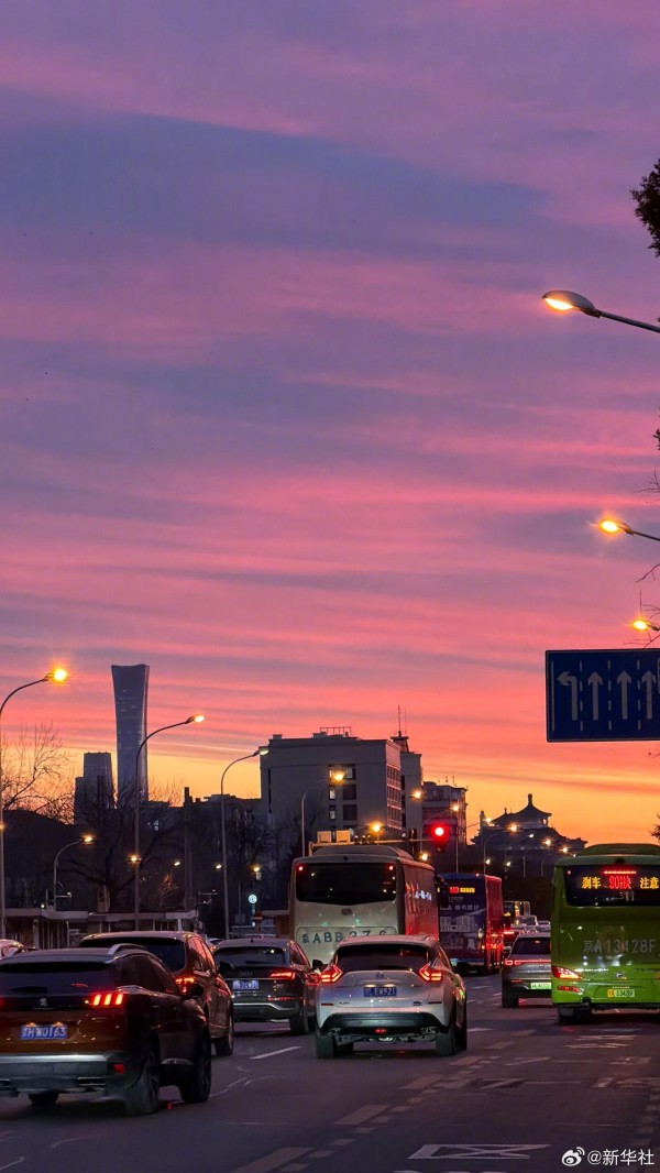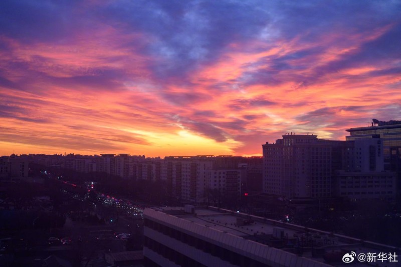 في صباح السابع من يناير، ظهرت في سماء بكين سُحب أرجوانية رائعة يتداخل فيها اللون الأرجواني مع الذهبي، وكأن المشهد من عالم خيالي. سُحب الصباح الأرجوانية الجميلة، تخطف قلوب الناظرين، لنشاهدها معا!
