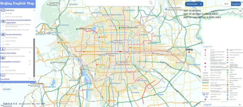 أُصدرت مؤخرًا خريطة بكين باللغة الإنجليزية (إصدار 2025). وقد جرى تحديث محتوى النسخة الجديدة (الموقع الإلكتروني: https://beijing.tianditu.gov.cn/EMap/1/1/EMap.html) الصادرة هذه المرة حتى نهاية عام 2025.
