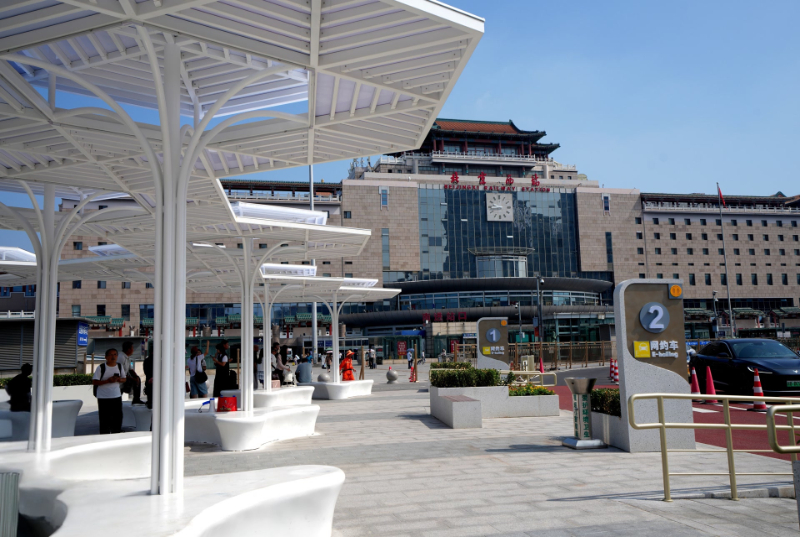 منذ بداية هذا العام، عملت بكين على تحسين "الانطباع الأول الرائع عند دخول بكين" في محطات القطارات المختلفة، من خلال تحديث البيئة، وتحسين تدفق الدخول والخروج من المحطات، مما أدى إلى تحسين جمالية "مناطق محطات الحدائق" وتسريع حركة المسافرين. ومن بين الأعمال التي تم القيام بها، إنشاء منطقة انتظار جديدة لسيارات الأجرة عبر الإنترنت على الجانب الغربي من الدوار في الساحة الجنوبية لمحطة بكين الغربية للقطارات، حيث يتميز الممر المظلل بتصميم جميل مع صناديق الزهور المتناثرة في كل مكان؛ وتمت إضافة لافتات إرشادية تحمل أرقامًا بالقرب من منطقة انتظار سيارات الأجرة عبر الإنترنت لمحطة بكين الغربية للقطارات، مما يسهل على السائقين والمسافرين العثور على بعضهم بسرعة؛ وأضيفت نقاط اتصال لسيارات الأجرة عبر الإنترنت في محطة بكين للقطارات لتخفيف الضغط على مواقف السيارات تحت الأرض؛ وتم تقسيم منطقة الاتصال بسيارات الأجرة عبر الإنترنت في محطة تشاو يانغ للقطارات إلى مناطق ملونة لسهولة تحديد الموقع من قبل الركاب والسائقين؛ وتم الانتهاء من تحديث وتحسين منطقة انتظار سيارات الأجرة عبر الإنترنت في موقف P1 في الساحة الجنوبية لمحطة فنغ تاي للقطارات، حيث تم تركيب مظلة شمسية بمساحة 360 مترًا مربعًا لحماية المسافرين من الشمس والمطر.