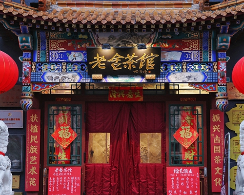 الوصف: سُمي مقهى الشاي هذا على اسم الفنان الشعبي الشهير "لاو شه" وأعماله المسرحية المشهورة. تأسس المقهى عام 1988، وتجاوزت مساحته التشغيلية 2600 متر مربع في الوقت الحاضر، وهو مقهى متعدد الوظائف، حيث يجمع بين مكان لاحتساء الشاي، وقاعة لقراءة الكتب، ومطعم، وورشة لممارسة فن الشاي.