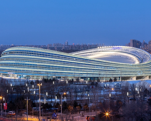 نبذة عن المكان: أحد المعالم البارزة لدورة الألعاب الأولمبية الشتوية ببكين 2022، بسقف على شكل سرج والواجهة الخارجية مكونة من 22 "شريطاً جليدياً".