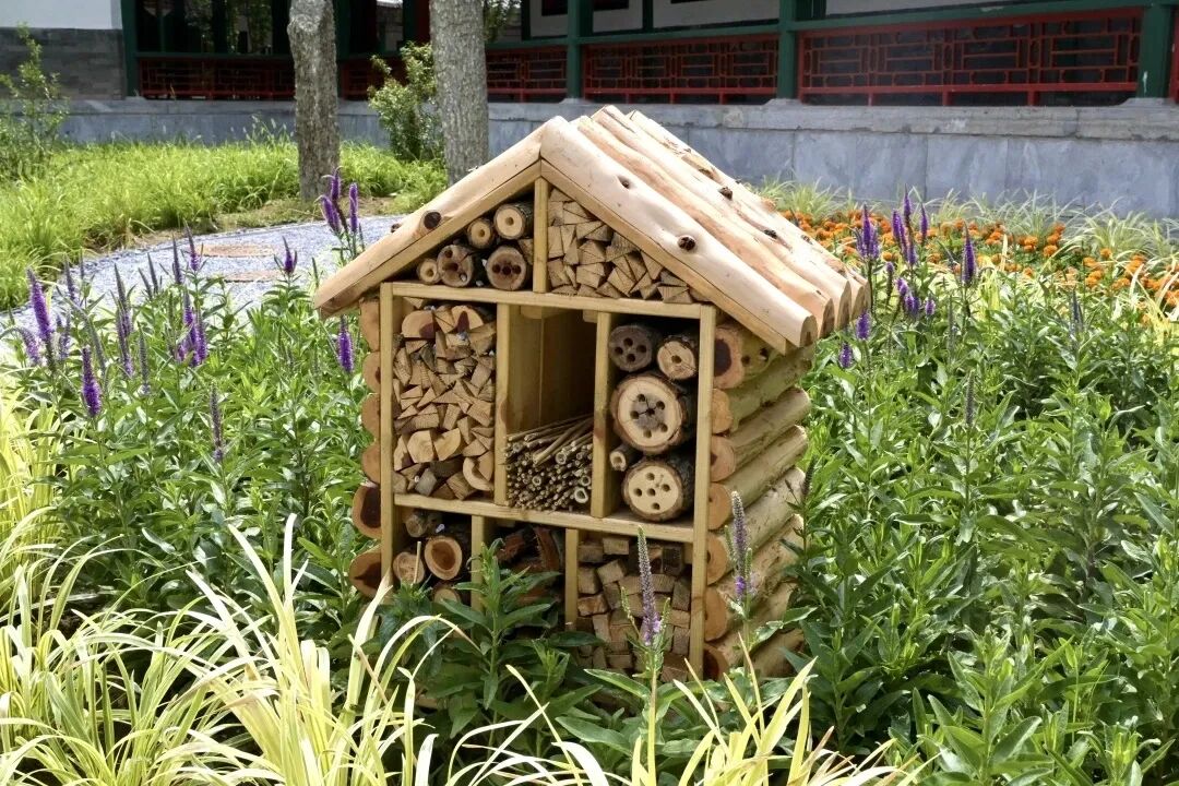 الطريقة الثالثة هي "تحويل النفايات إلى مناظر بأقل تدخل"، بهدف استخدام الأغصان الجافة والأوراق المتساقطة مباشرةً. في حديقة تشونغ شان، تم تحويل جذوع وأغصان أشجار الحور المقطوعة إلى مقاعد وخطوات عائمة، كما تم تجميعها أيضًا لتشكل "فندق الحشرات" المليء بالبرية، مما يوفر ملاذًا آمنًا لمختلف الحشرات.