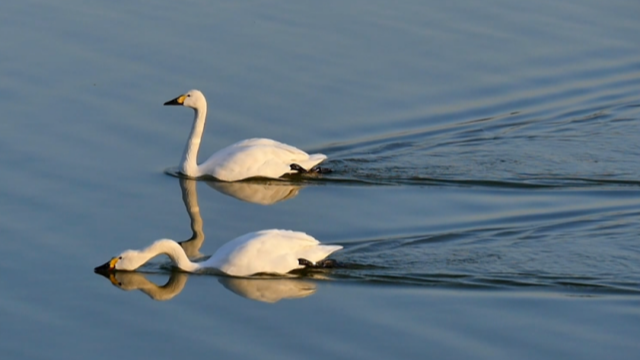 في سماء خزان شي يو المائي في حي بينغ قو ببكين، تحلق طائرتان من النسور ذات الذيل الأبيض بشكل مميز