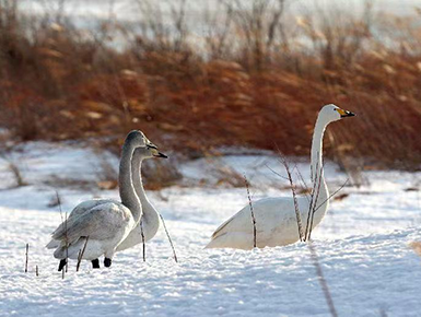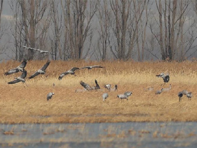 مؤخرا، استقبل خزان تانغ تشي شان المائي في حي شون إي ببكين 16 طائرا من طيور الكركي الرمادي، وهي من الحيوانات المحمية الوطنية من الدرجة الثانية، حيث توقفت لتستريح فوق الجليد المغطى بالثلوج. إن قامة الكركي الرمادي الطويلة تتناغم بشكل رائع مع الثلوج والجليد، مما يجذب أنظار الزوار.