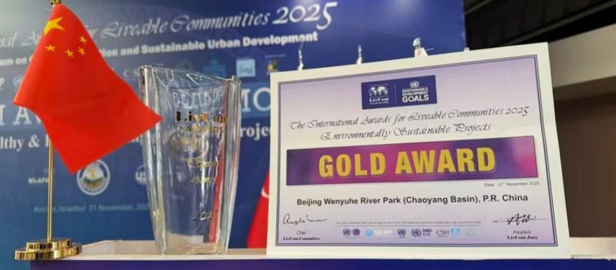 تم اختتام مؤخرًا النهائيات العالمية لمسابقات المدن الحدائقية الدولية 2025، التي تُعرف بـ"الأوسكار الخضراء" في مدينة إسطنبول التركية. وحصلت حديقة نهر ون يوي (جزء تشاو يانغ) ببكين على "الجائزة الذهبية لمشروع التنمية المستدامة البيئية" بفضل ممارساتها المتميزة في مجال البناء البيئي والتنمية المستدامة.