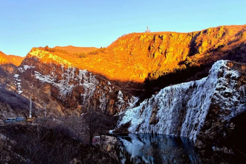 في شن تشيوان شيا بمن تو قو، وهي أرض "مباركة" في غرب بكين، تتجلى روائع الجليد والثلج التي أبدعتها الطبيعة. وبمجرد الدخول والسير على طول الممشى الخشبي في الوادي، يوجد الشلال الذي كان يتدفق في السابق قد تجمد في مكانه بفعل طبقات من الجليد.