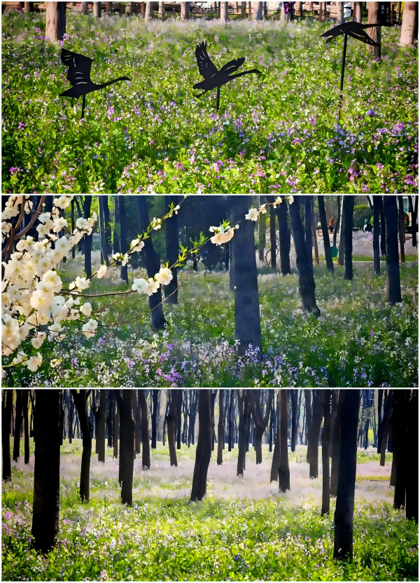 وتتزامن في هذه الأيام فترة الإزهار مع مهرجان أزهار الربيع في الحديقة، فلا تقتصر المشاهد على تلك الأزهار البنفسجية الصغيرة فحسب، بل تتفتح أيضًا أنواع عديدة من الأزهار الأخرى التي تشكل بدورها باقة رائعة من الألوان.