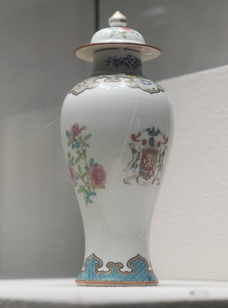 يُعد الخزف الموشَّى بالشعارات النبيلة أحد أنواعالخزف الصيني القديم المخصص للتصدير إلى الخارج، وسُمي بذلك لأنه مزيَّن برسوم شعارات النبلاء الأوروبيين على سطحه. تأتي القطع (أوالمجموعات) الـ 135 من المعروضات من متحف تيانجين وتروي عملية تخصيص الخزف المزخرف الصيني والأنشطة التجارية وفقًا لثلاث أجزاء: "طريق الخزف في التجارة البحرية" و"أدوات العائلات النبيلة" و"الجمال المشترك". سيستمر هذا المعرض حتى 3 مارس 2026.
