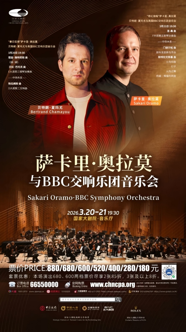 في الفترة من 20 إلى 21 مارس 2026، سيقدم قائد الأوركسترا الفنلندي ساكاري أورامو مع أوركسترا بي بي سي السيمفونية البريطانية، بالتعاون مع عازف البيانو الفرنسي برتران شامايو، حفلتين موسيقيتين سيمفونيتين على مسرح المركز الوطني للفنون المسرحية، بما في ذلك الحفل الأول "خيال الربيع" والحفل الثاني "رحلة خيالية".