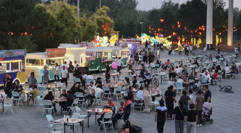 تحت أضواء الليل، يمكنك التجول على طول الممر الأخضر للحديقة، والاستمتاع برقة وجمال ليالي الصيف فيها. خلال جولتك الليلية، لا ينبغي تفويت زيارة منطقة التراث الثقافي غير المادي، حيث يمكن التفاعل عن قرب مع الحرف اليدوية المميزة، والاستمتاع بتجربة تفاعلية تُبرز سحر الفنون التقليدية.